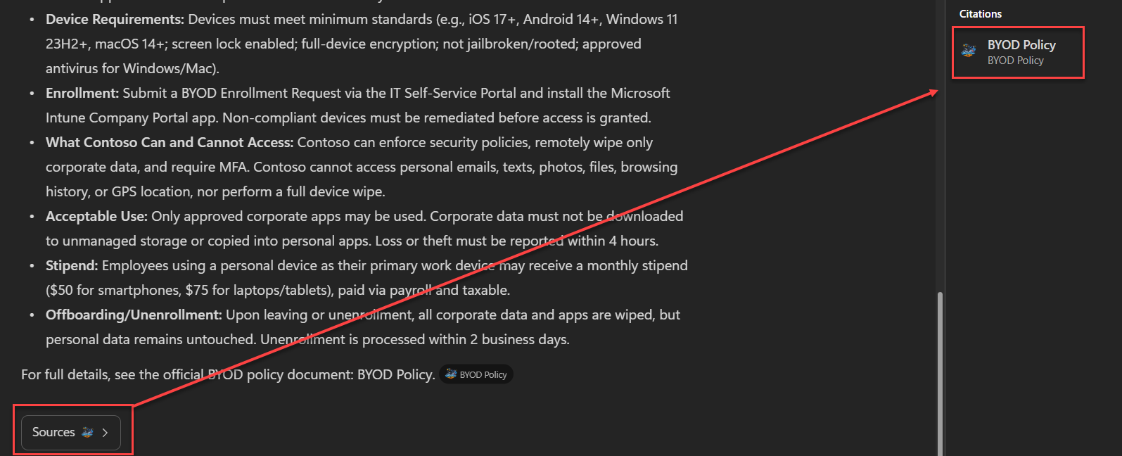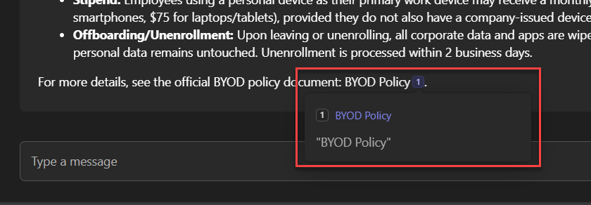 The solution properly handles links and references sent by the agent for both Teams and Copilot experiences: